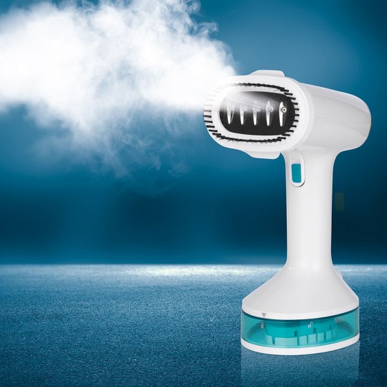 In minutenschnelle entfernen Sie mit dem handlichen HAND-DAMPFGERÄT schlechte Gerüche, Bakterien sowie Falten aus Kleidung, Polstern und Vorhängen. Das ergonomische Dampfgerät reinigt, glättet und frischt Ihre Textilien mit kraftvollem Dauerdampf von bis zu 22 g/min auf. Hervorragend auch geeignet zum vertikalen Bedampfen von Vorhängen. Mit dem Textilbürstenaufsatz entfernen Sie Schmutz und Flusen schonend von Ihrer Kleidung – ideal auch auf Reisen! Inklusive Textil- und Bügelfaltenaufsatz. Maße (B x H x T): ca. 9 x 22 x 13 cm. Betrieb über 220–240 V. 1.200 Watt. Ihr Multitalent für hygienische Sauberkeit und den gepflegten Auftritt!