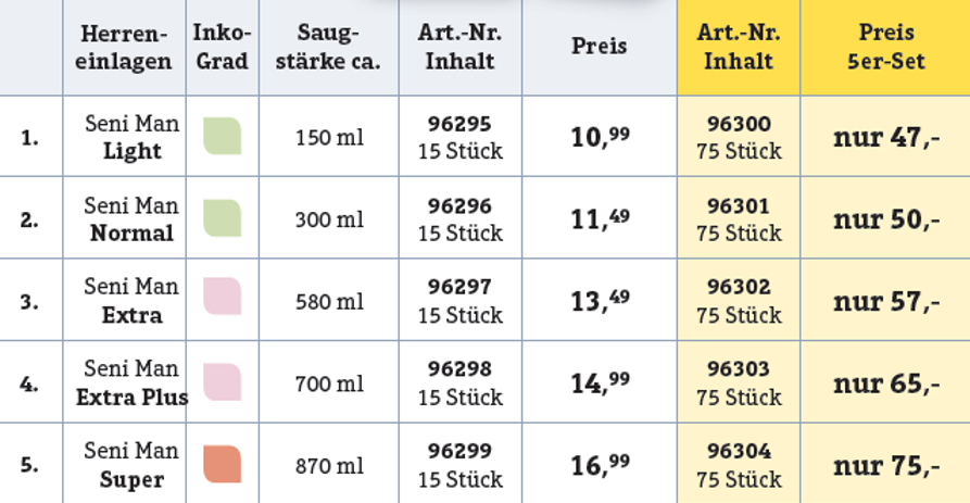 Ihre Vorteile: + Form auf Anatomie des Mannes abgestimmt + Elastische Seitenteile verhindern Auslaufen + Angenehmes Trockenheitsgefühl + Verteilung der Feuchtigkeit in den inneren Saugkern + Reduziert Gerüche durch Superabsorber (Saugkern) + Einfache Fixierung durch Klebestreifen + Atmungsaktiv und hautfreundlich + Latexfrei - minimiert allergische Reaktionen + Durch weiches Pad raschelt nichts