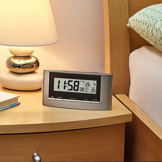 Nie wieder Batterien wechseln: Dieser LAUTLOSE SOLAR-FUNKWECKER ist ein Genie! Unabhängig vom Stromnetz funktioniert er immer und überall, denn er bezieht seine Energie per integriertem Solarpanel einfach über das Tageslicht! Präziser Funkwecker mit zusätzlicher Anzeige von Wochentag, Datum und Innentemperatur. Beste Ablesbarkeit des Displays dank der bei Dunkelheit selbstleuchtenden speziellen Luminous-Hintergrundbeleuchtung. Mattsilberfarbenes Kunststoffgehäuse, Maße (B x H x T): ca. 16 x 8 x 5 cm. Inklusive programmiertem Kalender bis 2069 und Weckalarm mit Weckwiederholung – ein wirklich zuverlässiger „Zeitgenosse“. Ohne Strom, ohne Batterien und ohne schlafraubendes „Ticken“ in der Nacht!