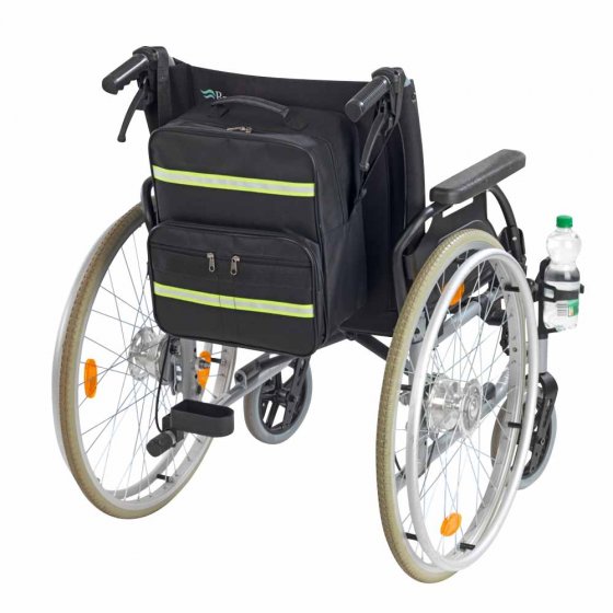 Die hochwertige Komforttasche eignet sich perfekt als Rückenlehnen-Tasche für Rollstühle. Mit ihrem cleveren 4-Fächersystem bietet sie viel Stauraum - alles griffbereit und gut verstaut! Das großzügige Hauptfach bietet viel Platz und der über 3 Seiten laufende 2-Wege-Reißverschluss erlaubt das komplette Öffnen des Fachs. Die wetterfeste Tasche verfügt über ein weiteres breites Fach mit Dehnfalte sowie zwei kleine Fächer. Dank zweier verstellbarer Gurtschlaufen lässt sich die Komfort-Tasche sicher am Rollstuhl oder Rollator befestigen. Zwei große Leuchtstreifen sorgen für mehr Sicherheit. Bei Nichtgebrauch lässt sie sich flach zusammenlegen (4 cm) und platzsparend verstauen. Tragkraft von 15 kg, Material: Polyester 600D, Maße: B: 30,5 cm x H: 36 cm x T: 19 cm, Farbe: Schwarz.